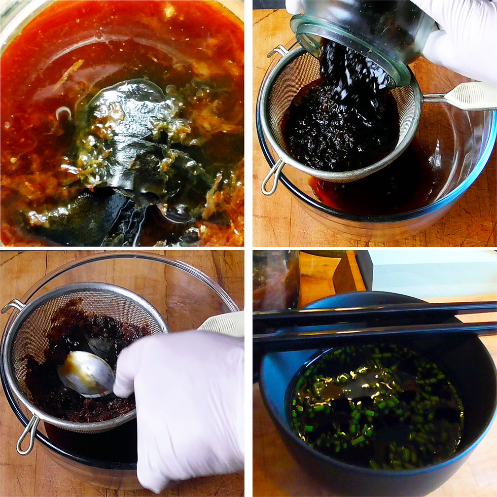 Don’t discard the bonito flakes and the Kombu; the can be used to make a stock for your future miso soup.